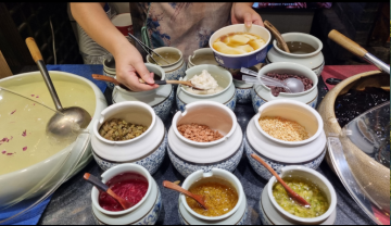 빙펀(冰粉 빙펀)은 더운 날씨에 시원하게 즐기기 좋은 디저트다. 투명하고 말랑한 젤리 같은 빙펀에 흑설탕 시럽, 견과류, 과일 등을 넣어 먹는다.