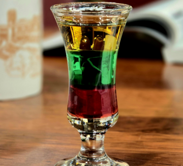 그레나딘 시럽 위에 바 스푼의 등 부분을 대고, 스푼을 타고 흐르게 하여 크렘 드 민트 그린을 조심스럽게 붓는다. 같은 방법으로 가장 가벼운 브랜디를 마지막에 띄운다.
