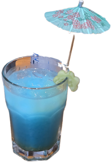 재료는 생막걸리 90ml, 꼬엥뜨르 10ml, 꿀 모과청 15ml, 후레쉬 라임주스 5ml, 블루퀴라소 시럽 5ml, 그리고 토닉워터와 얼음이 필요하다.